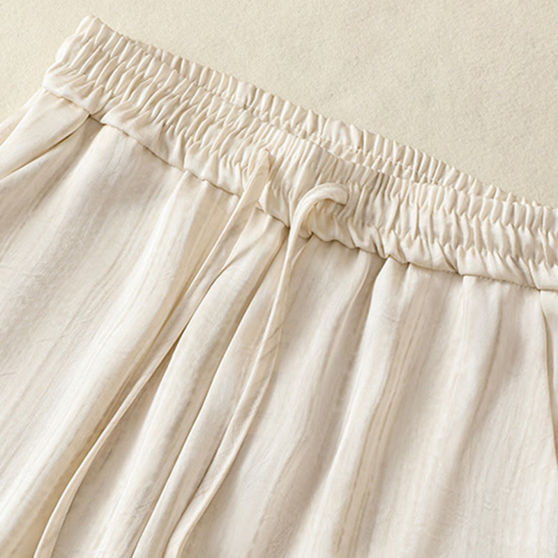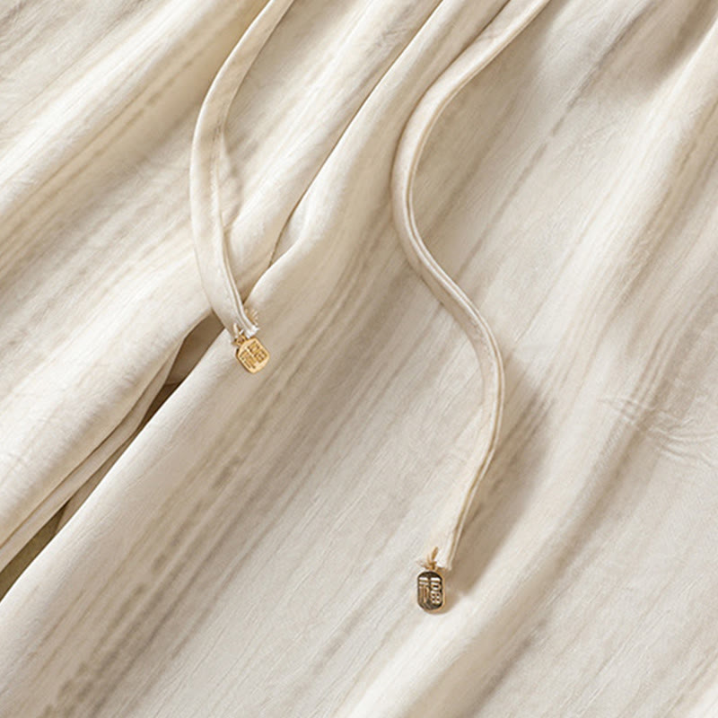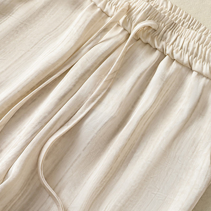 Buddha Stones Artistic Casual Vertical Lines Pattern Drawstring Ankle-length Women's Pants With Pockets - Beige - US8-10,UK/AU12-14,EU40-42 (2XL) - image 0