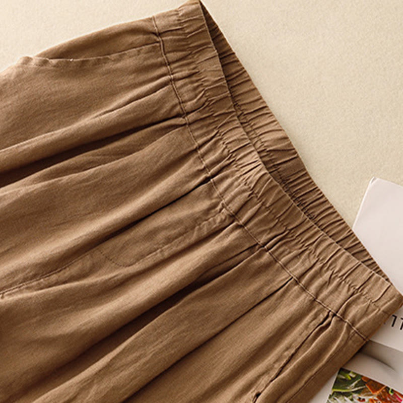 Buddha Stones Casual Plain Frog-Button Design 7-8 Length Cotton Linen Women's Harem Pants With Pockets