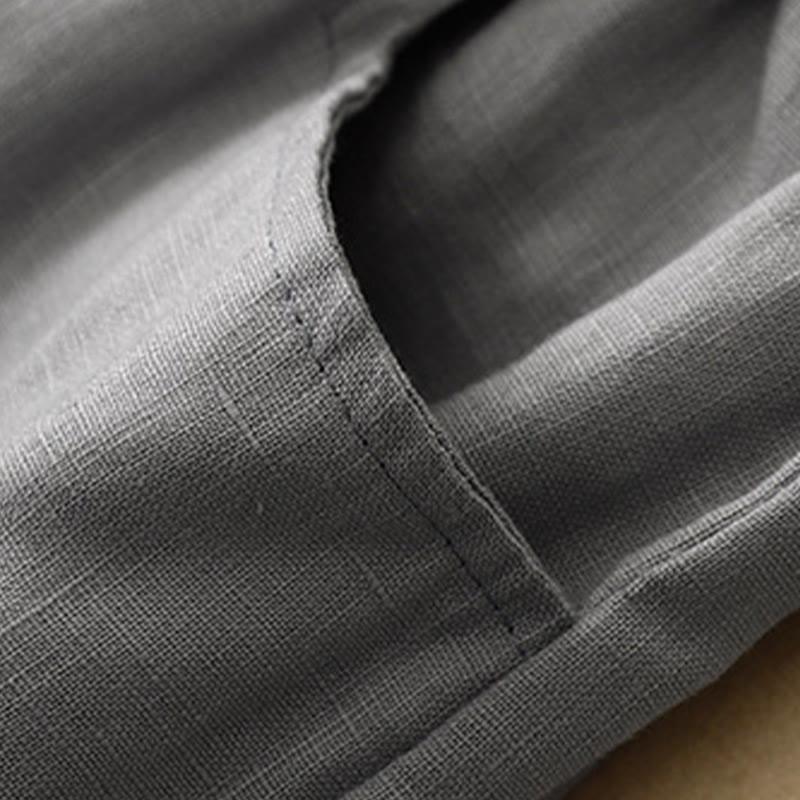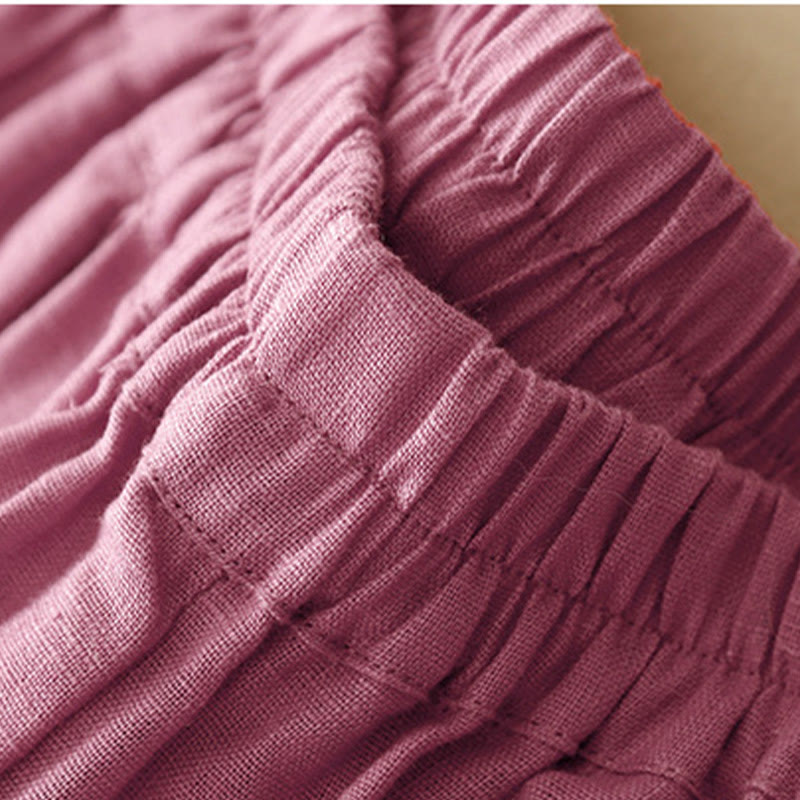 Buddha Stones Casual Plain Solid Color Linen Women's Pants With Pockets
