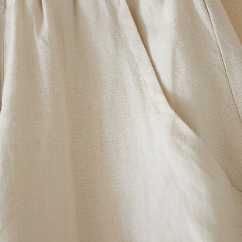 Buddha Stones Casual Solid Plain Color Cotton Linen Women's Shorts With Pockets
