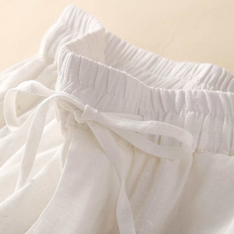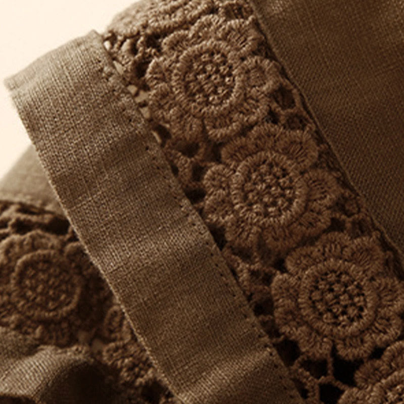 Buddha Stones Plain Color Bottom Hollow Lace Design Lace-up Cotton Women's Shorts With Pockets
