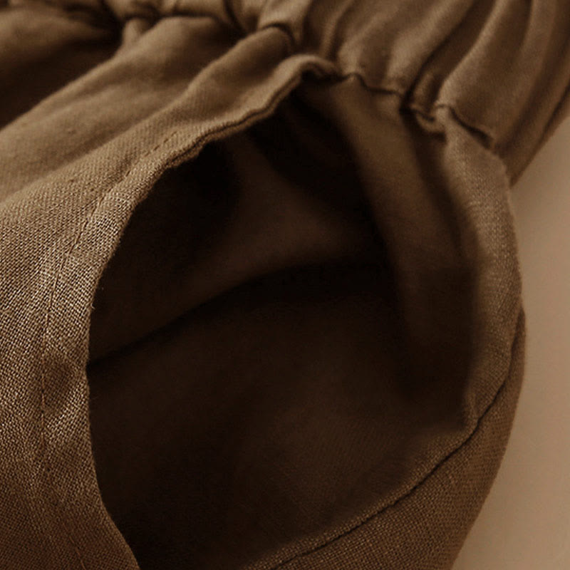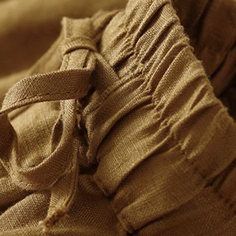 Buddha Stones Plain Color Bottom Hollow Lace Design Lace-up Cotton Women's Shorts With Pockets - image 51