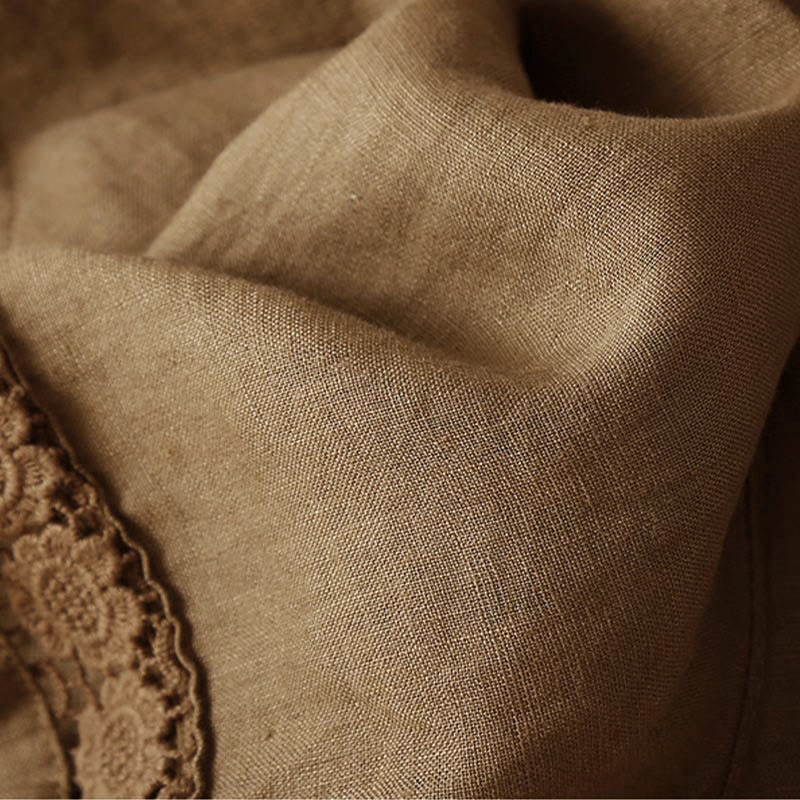 Buddha Stones Plain Color Bottom Hollow Lace Design Lace-up Cotton Women's Shorts With Pockets - Sienna - US12,UK/AU16,EU44 (3XL) - image 36