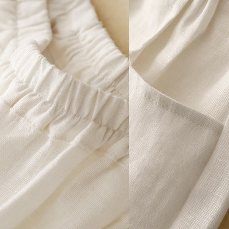 Buddha Stones Summer Commute Pure Color Women's Cotton Ankle-Length Pants With Pockets