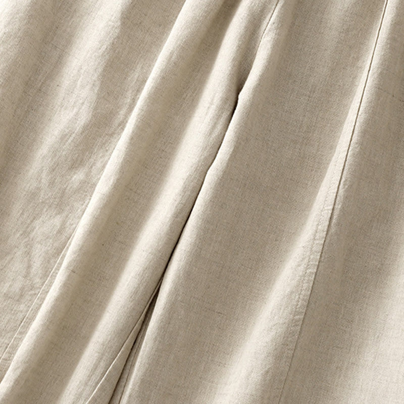 Buddha Stones Summer Embroidery Pure Color Patchwork Design Women's Cotton Linen Pants With Pockets