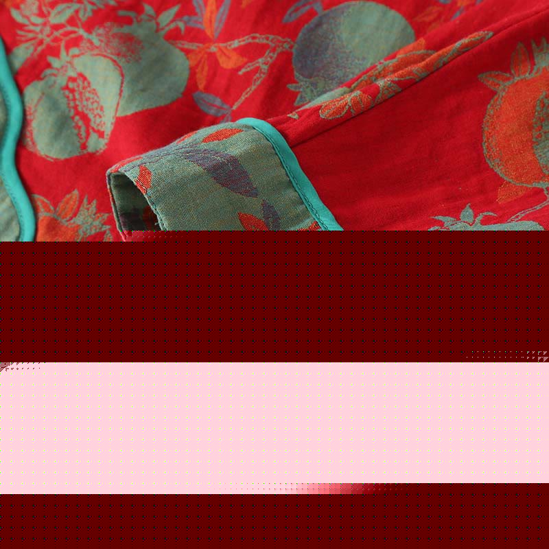 Buddha Stones 2pcs Patchwork Long Sleeve Frog-Button Shirt Pants With Pockets Pure Cotton Set  - Red Fruit Pattern - US6,UK/AU10,EU38 (XL) - image 4