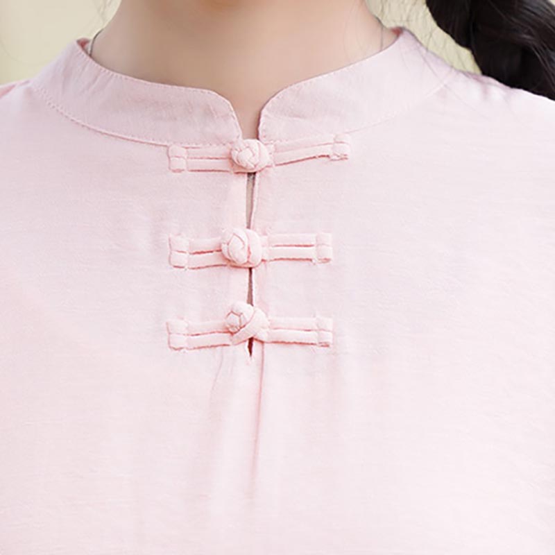 Buddha Stones 2Pcs Plain Design Top Pants Meditation Yoga Zen Tai Chi Cotton Linen Clothing Women's Set - Pink Chinese Frog Button(Top&Pants) - US8-10,UK/AU12-14,EU40-42 (2XL) - image 26