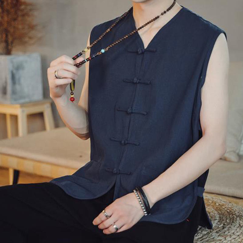 Buddha Stones Casual Chinese Frog-Button Men's Cotton Vest Waistcoat With Pockets