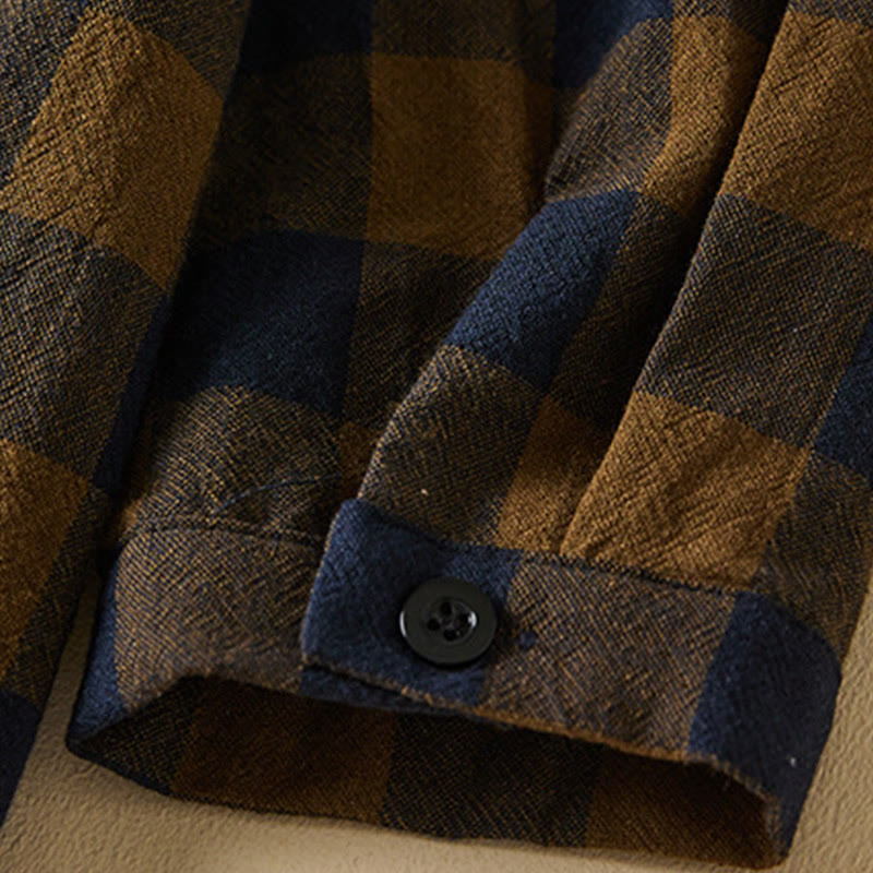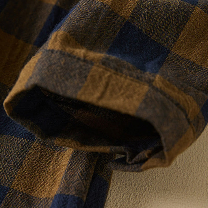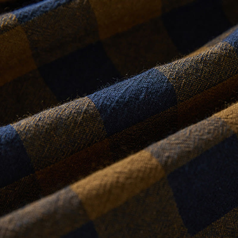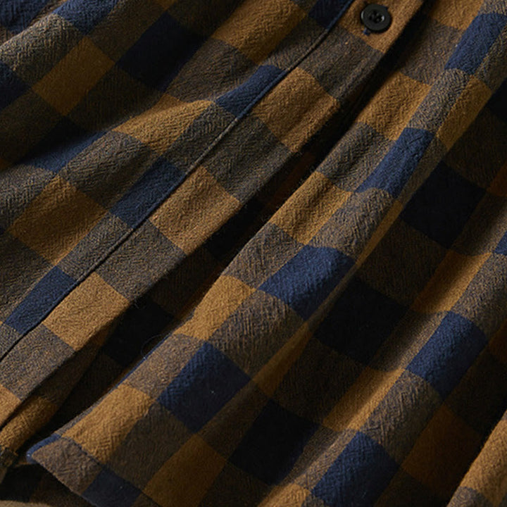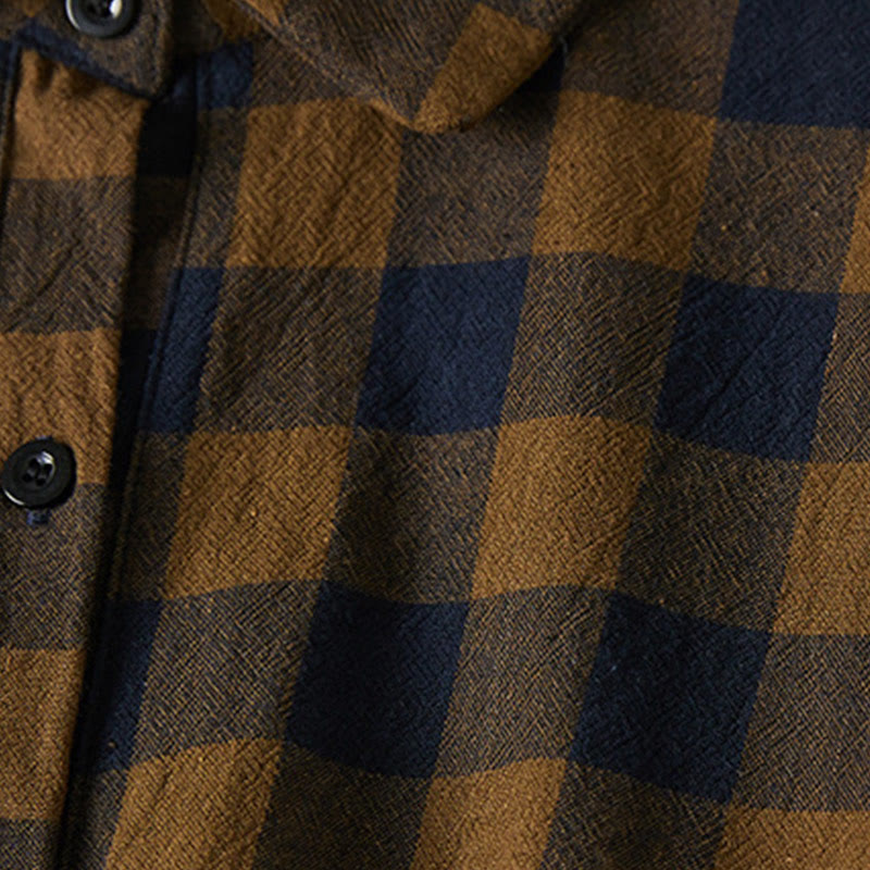 Buddha Stones Contrast Color Plaid Buttons Design Cotton Linen Long Sleeve Midi Dress With Pockets - DarkGoldenrod - US8-10,UK/AU12-14,EU40-42 (2XL) - image 1
