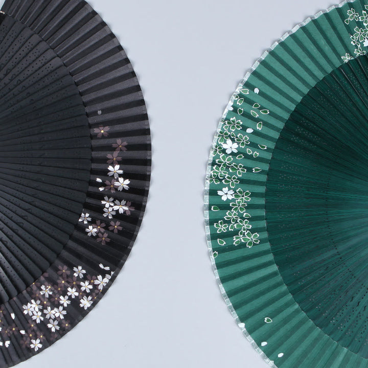 Buddha Stones Cherry Blossom Sakura Camellia Handheld Silk Bamboo Folding Fan 21cm