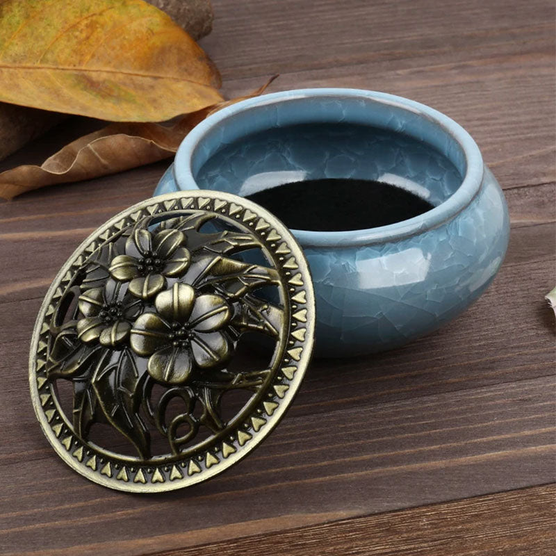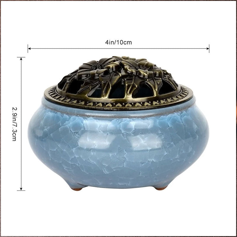 - 【Two-in-one incense burner】Made of porcelain with a beautiful metal lid for inserting cones/rolling incense. The incense burner measures approximately 4 inches in diameter by 2.9 inches high. This product has only one incense burner, not including accessories such as incense holder and incense.