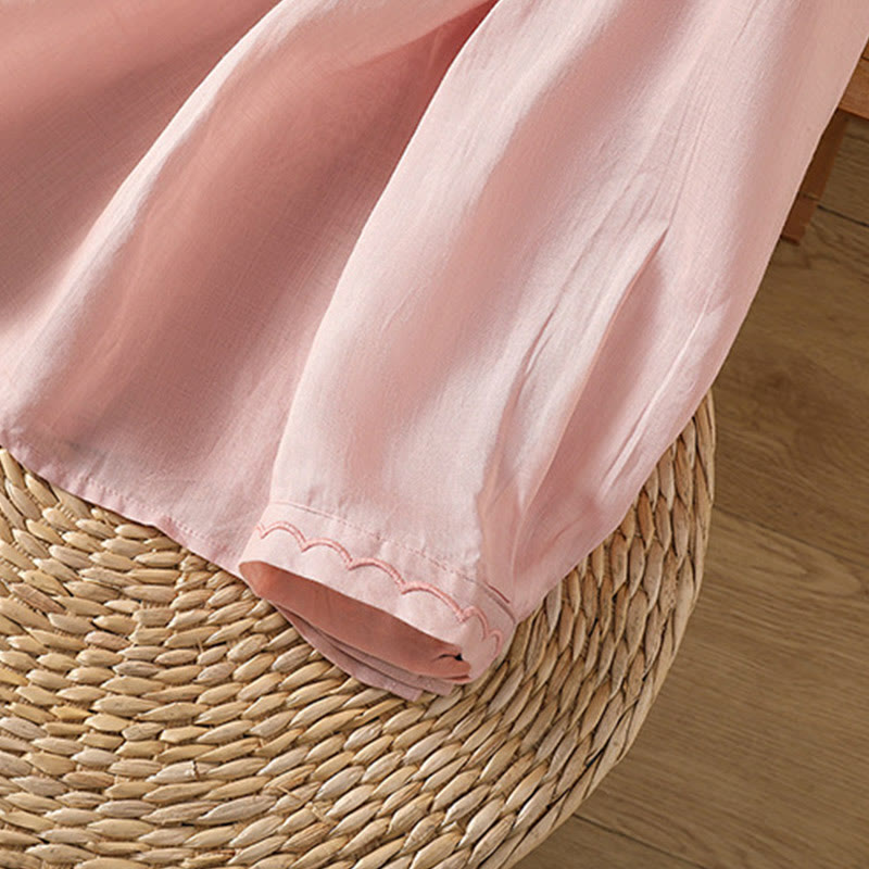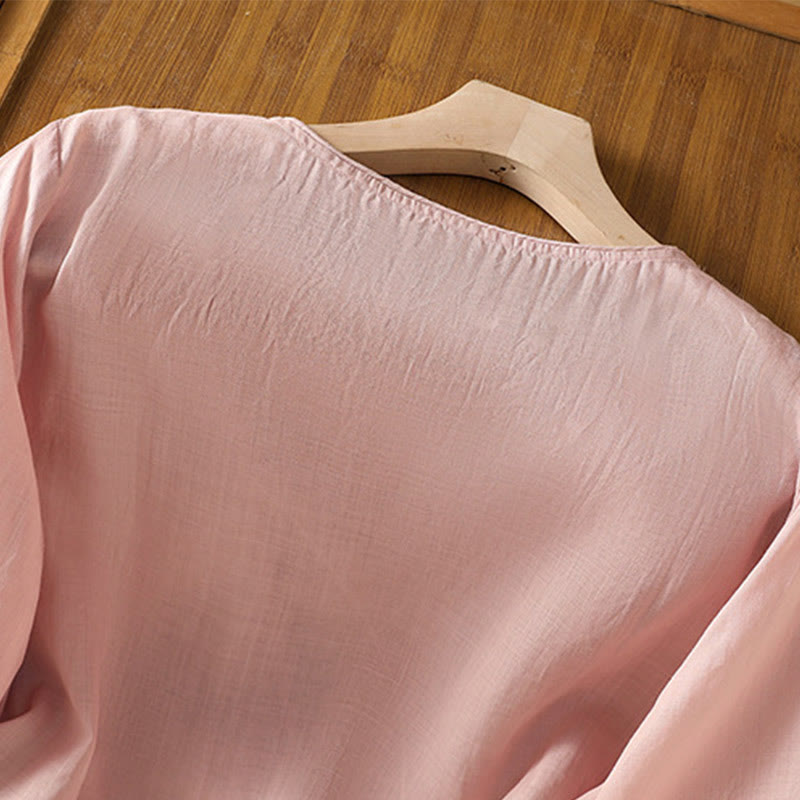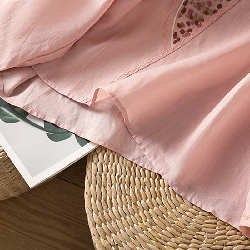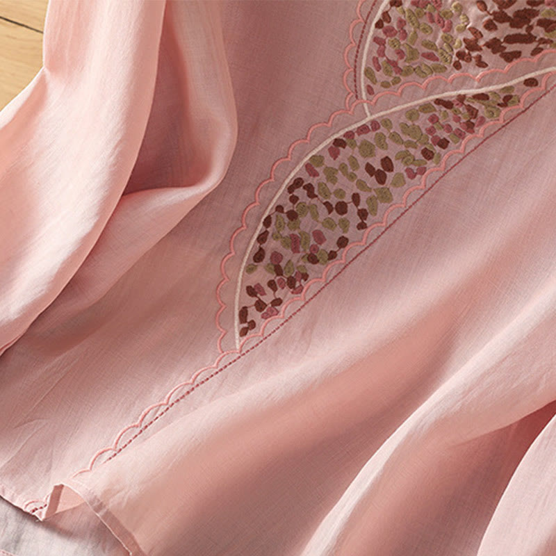 Buddha Stones Ethnic Embroidery Crew Neck Cotton Linen Pullover Clothing - Pink - US8-10,UK/AU12-14,EU40-42 (2XL) - image 19