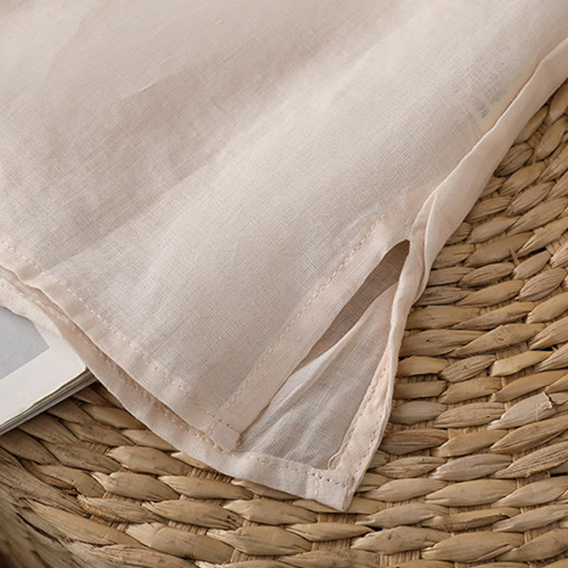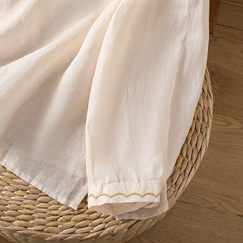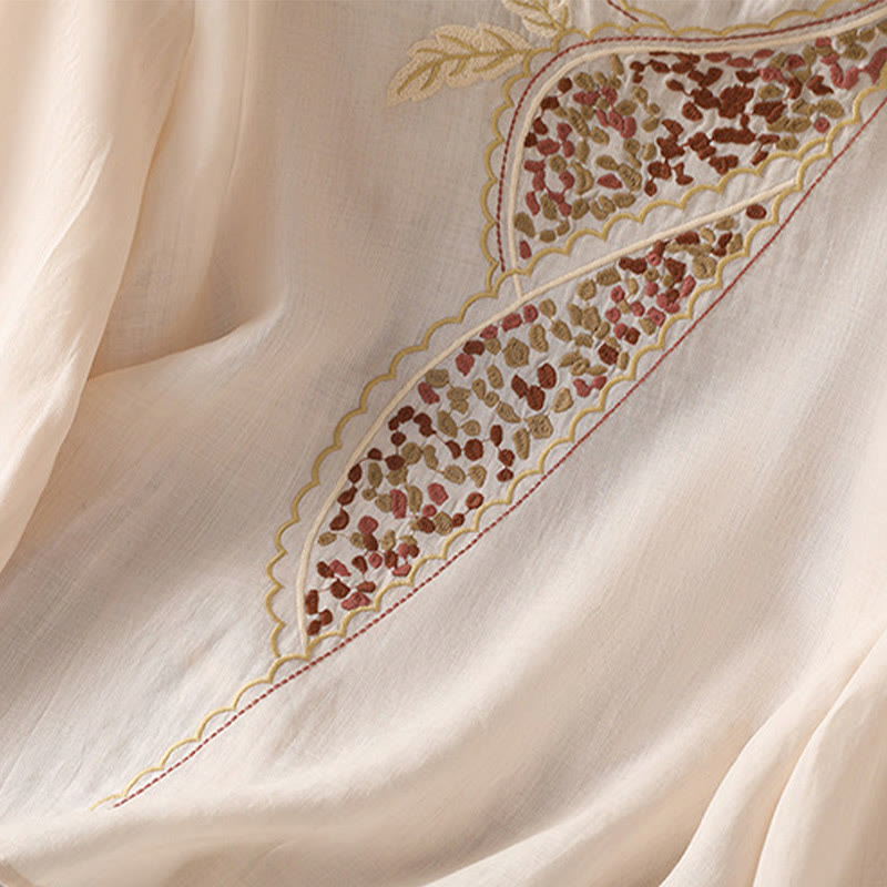 Buddha Stones Ethnic Embroidery Crew Neck Cotton Linen Pullover Clothing - Bisque - US8-10,UK/AU12-14,EU40-42 (2XL) - image 1