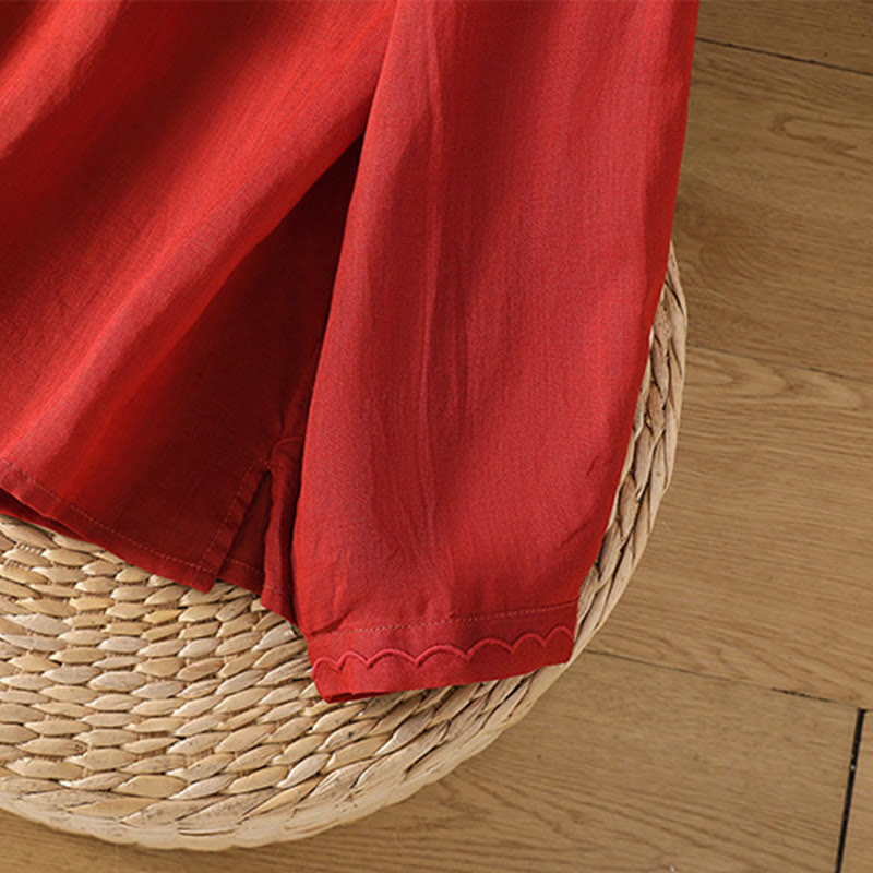 Buddha Stones Ethnic Embroidery Crew Neck Cotton Linen Pullover Clothing - Red - US8-10,UK/AU12-14,EU40-42 (2XL) - image 11