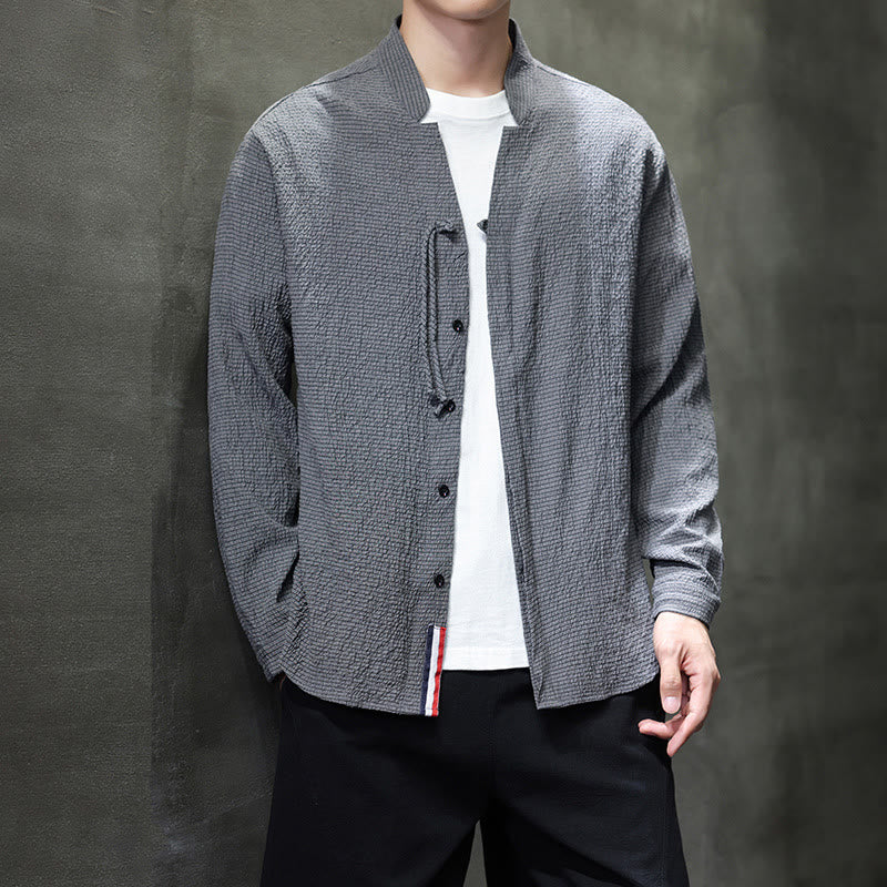 Buddha Stones Fall Solid Color Men's Button Long Sleeve Shirt Clothing