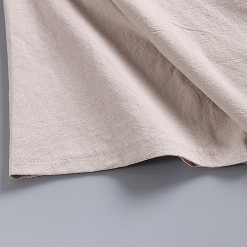 Buddha Stones Loose Men's T-Shirt Solid Color Top Short Sleeve V Collar Breathable Linen Shirt