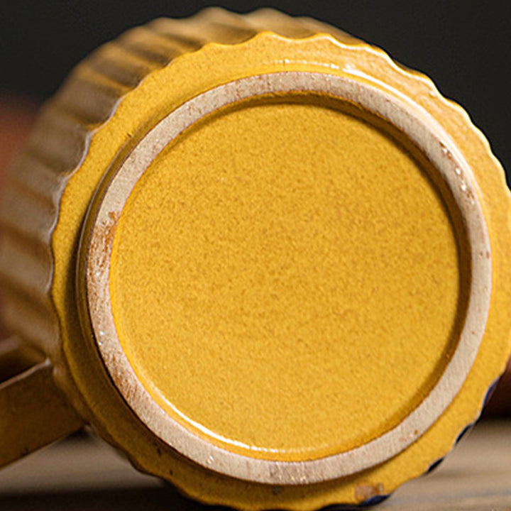Buddha Stones Retro Striped Kiln Change Ceramic Coffee Mug Rough Pottery Tea Coffee Cup With Saucer 250ml