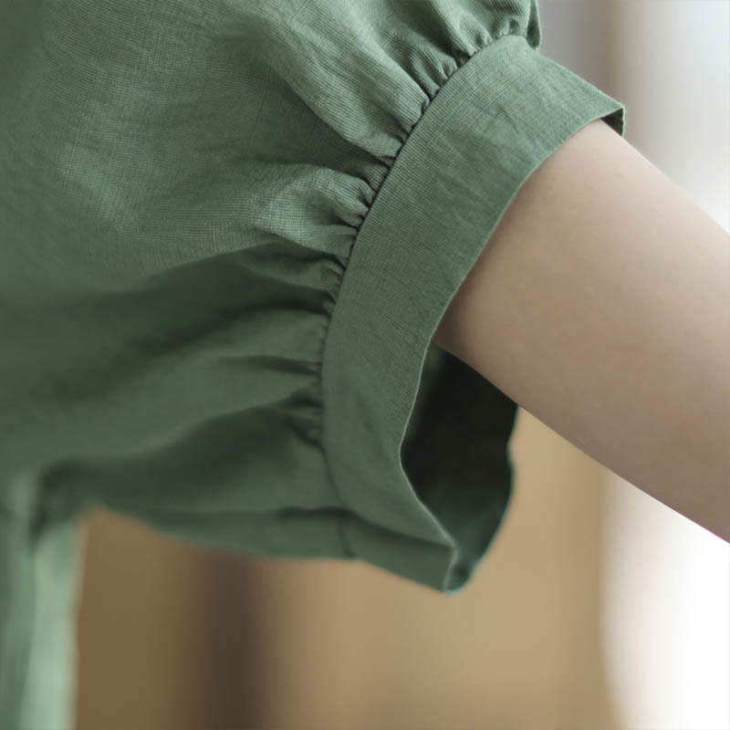 Buddha Stones Small Floral Embroidery V-Neck Half Sleeve Cotton Linen T-shirt Tee - image 10