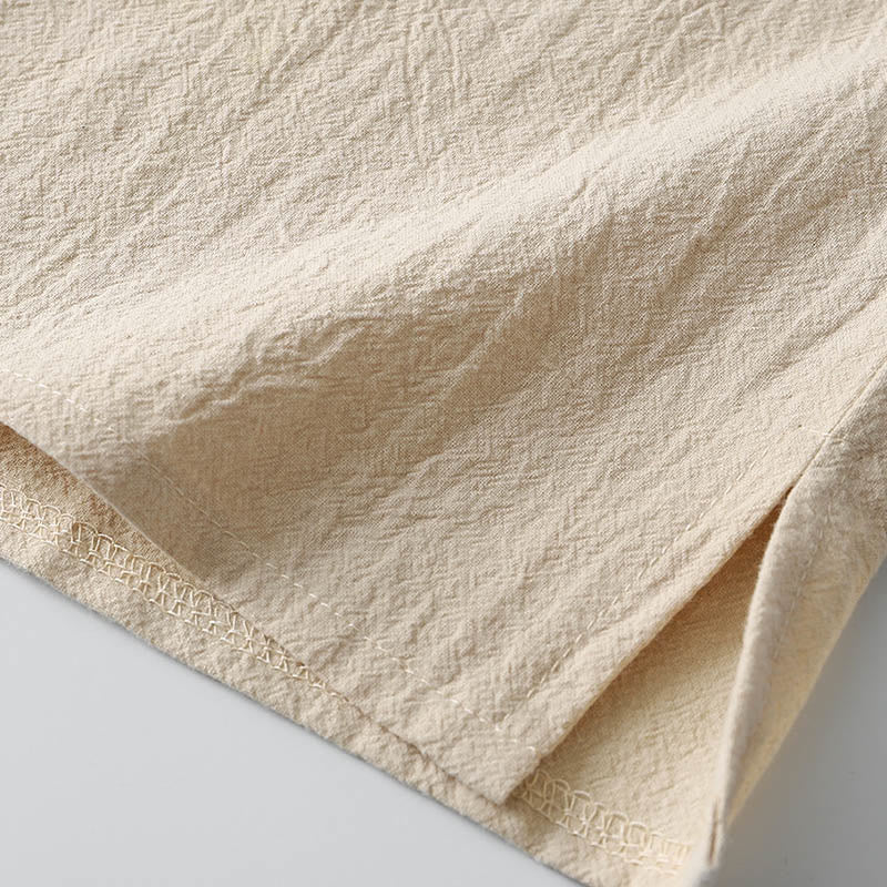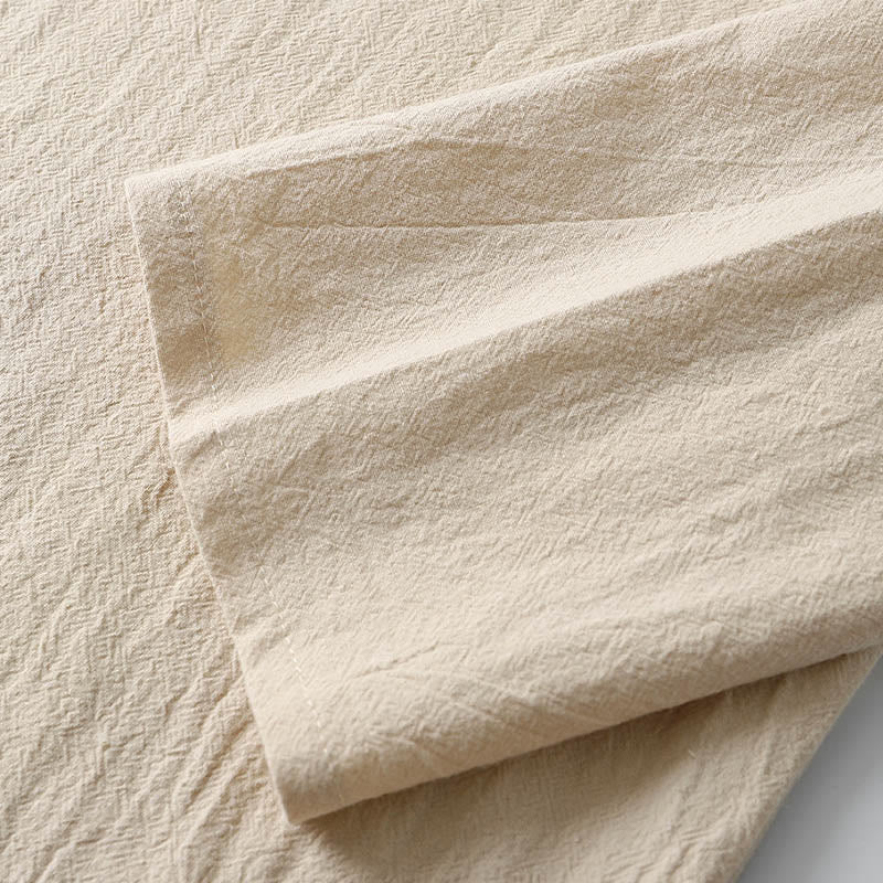 Buddha Stones Solid Color Long Sleeve Button Shirt Cotton Linen Men Clothing