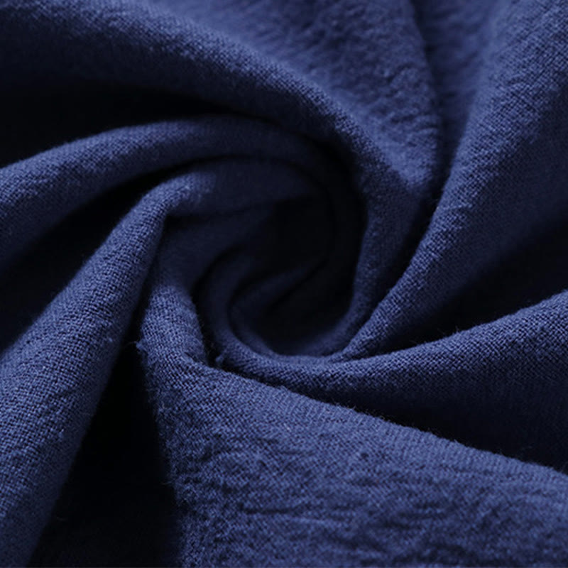 Buddha Stones Solid Color Short Sleeve One Frog Button Cotton Linen Men's Shirt - image 10