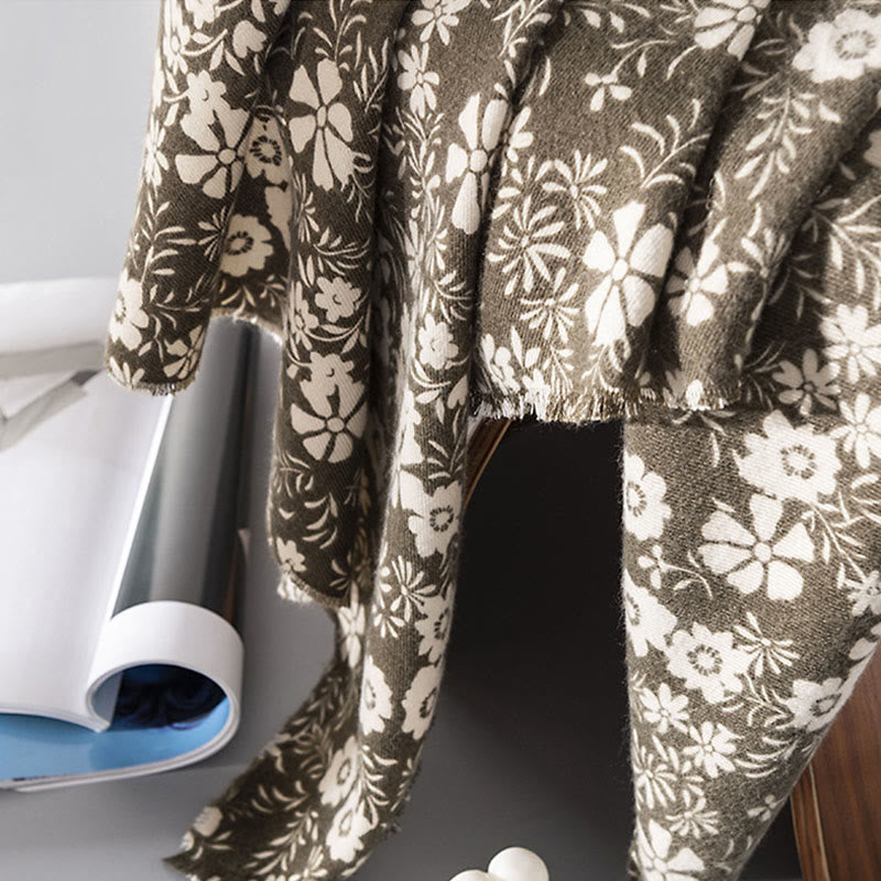 Buddha Stones Tibetan Shawl Fresh Daisy Print Fall Winter Soft Warm Travel Scarf Wrap - DarkKhaki 190*65cm - image 0