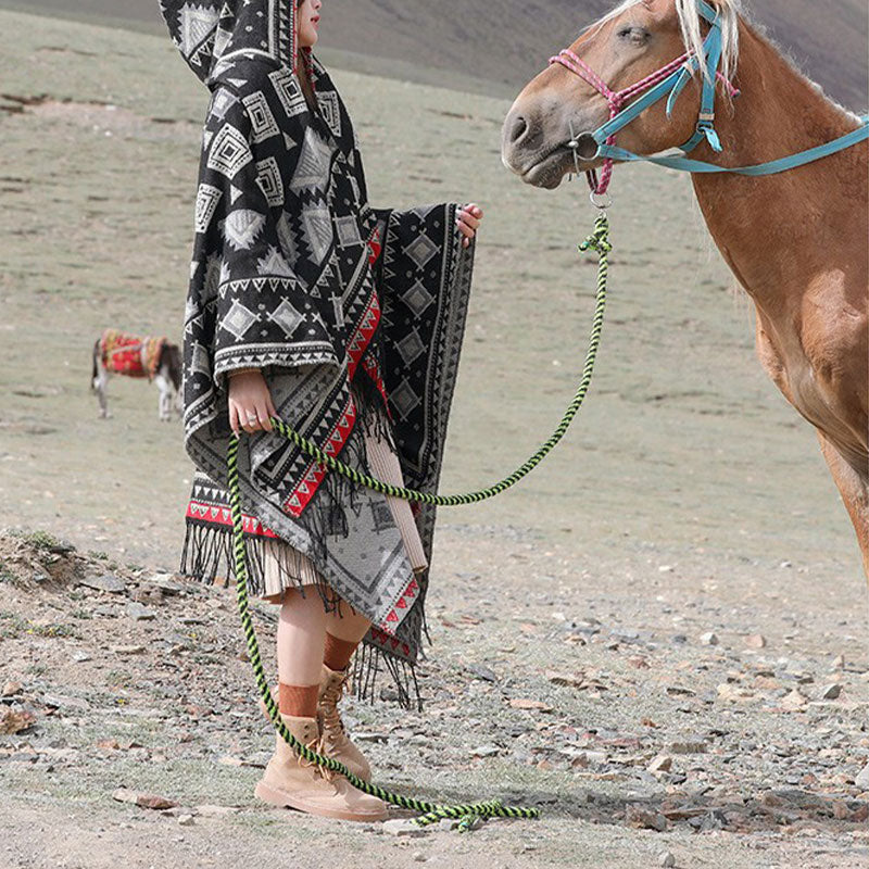 Buddha Stones Tibetan Shawl Triangle Pattern Hooded Cloak Winter Cozy Travel Scarf Wrap