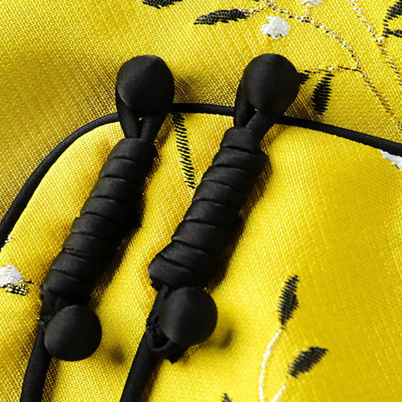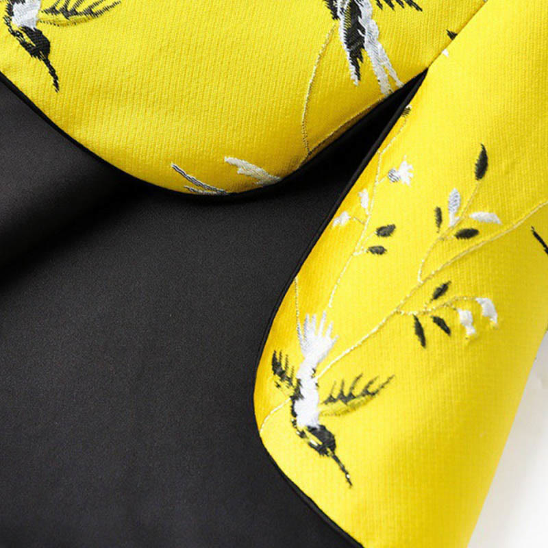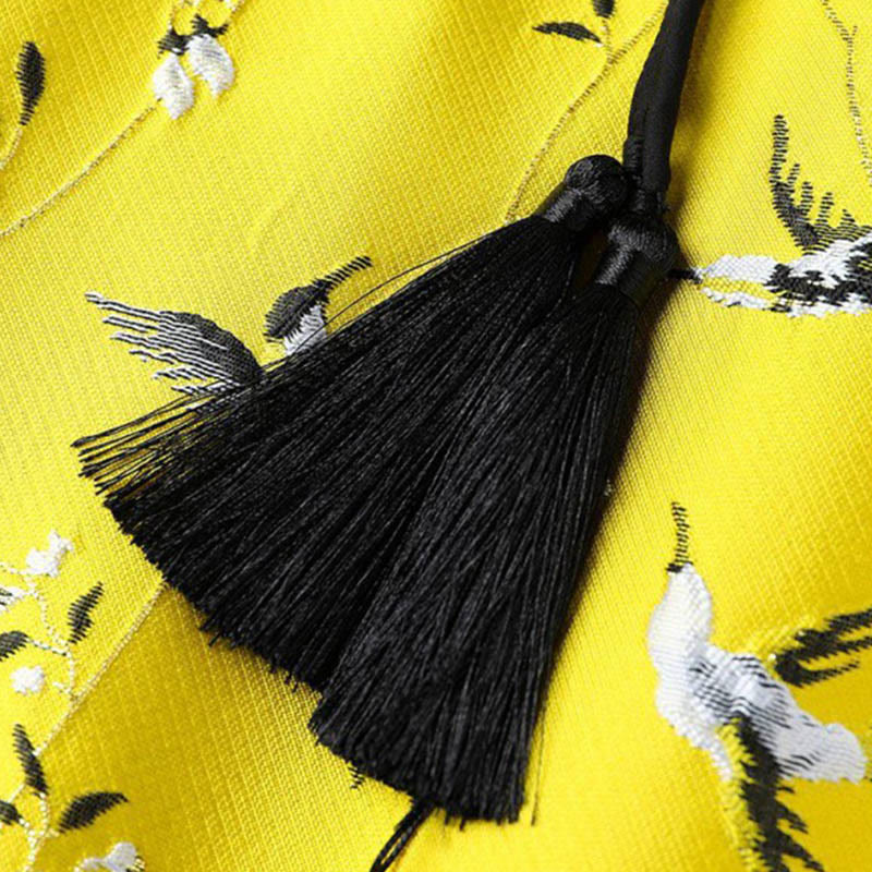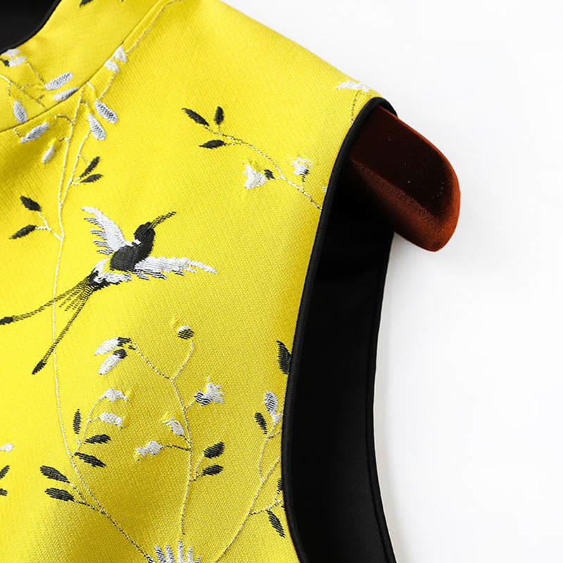 Buddha Stones Vintage Embroidery Crane Plants Pattern Knot Button Vest - Yellow - US12,UK/AU16,EU44 (3XL) - image 0