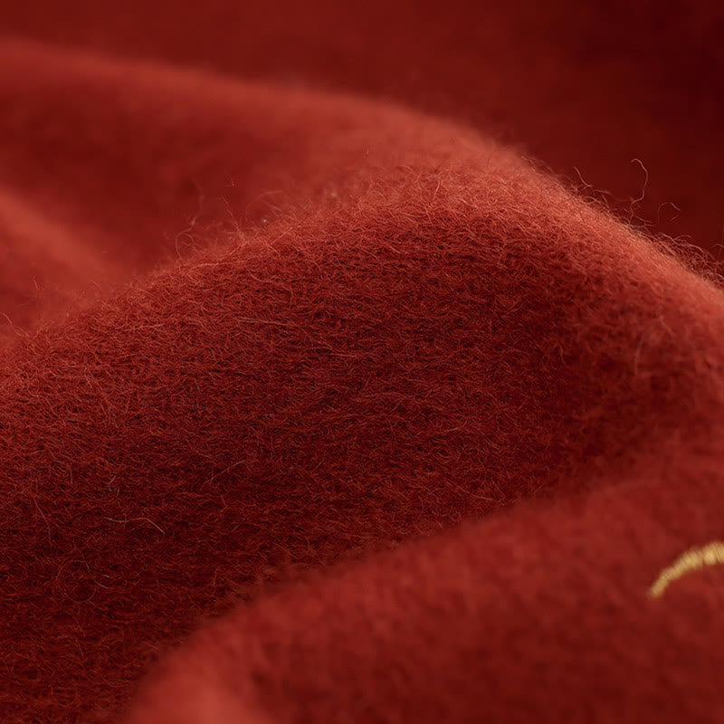 Buddha Stones Wool Shawl Red Flower Gold Sequins Embroidery Tassel Winter Cozy Travel Scarf Wrap