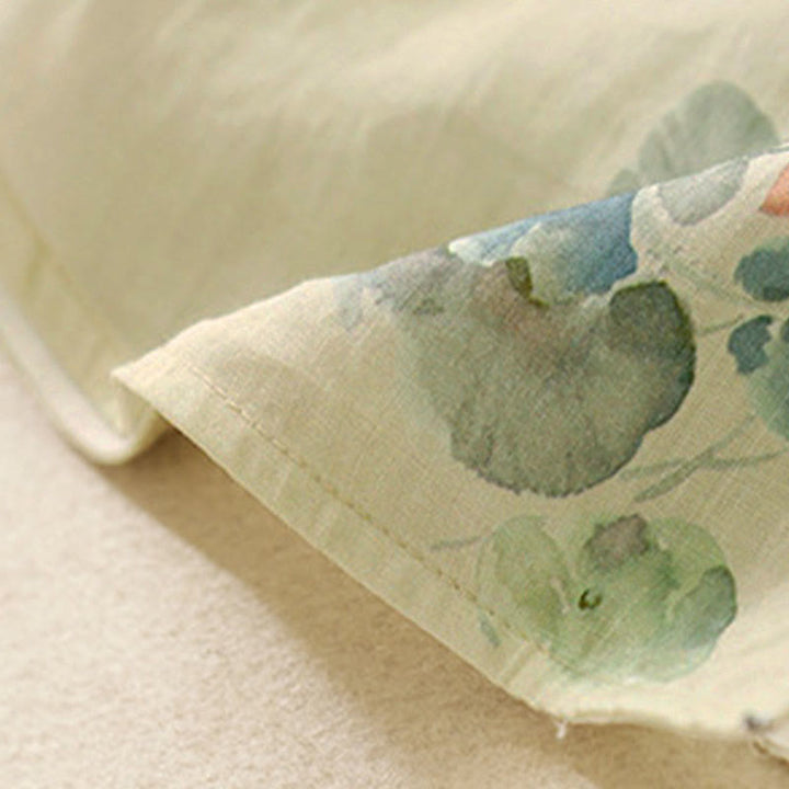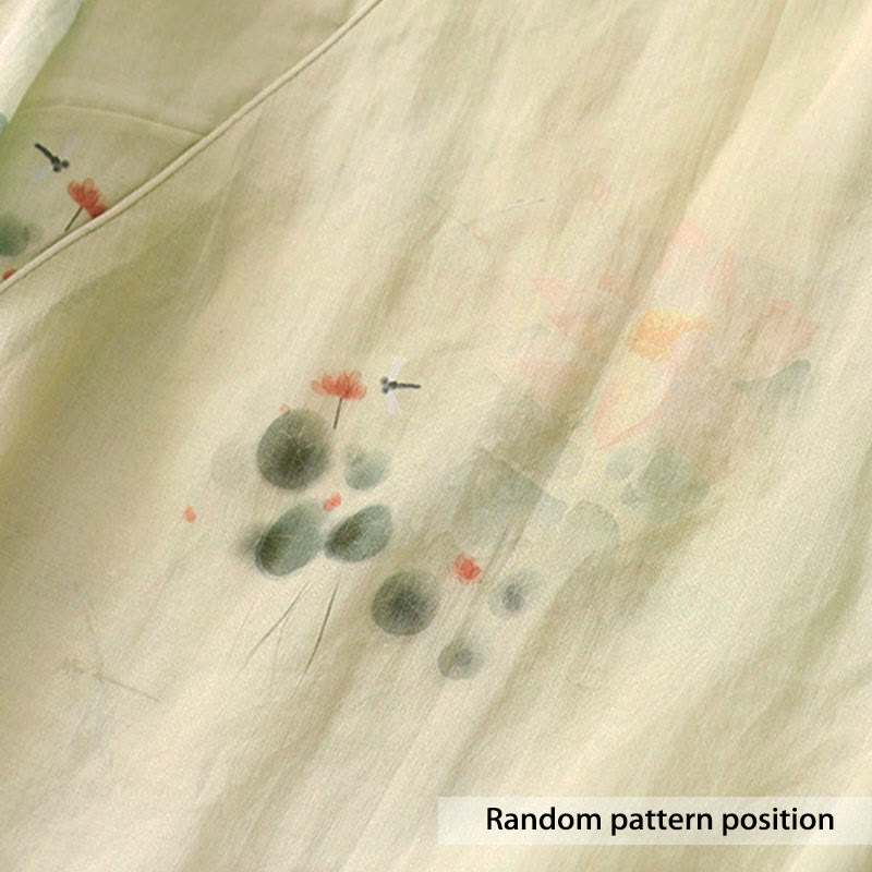 Buddha Stones Casual Women's Ink Lotus Pattern Frog-button Slanted Collar Design Three Quarter Sleeve Shirt