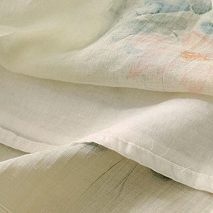 Buddha Stones Casual Women's Ink Lotus Pattern Frog-button Slanted Collar Design Three Quarter Sleeve Shirt - Beige - US8-10,UK/AU12-14,EU40-42 (2XL) - image 0