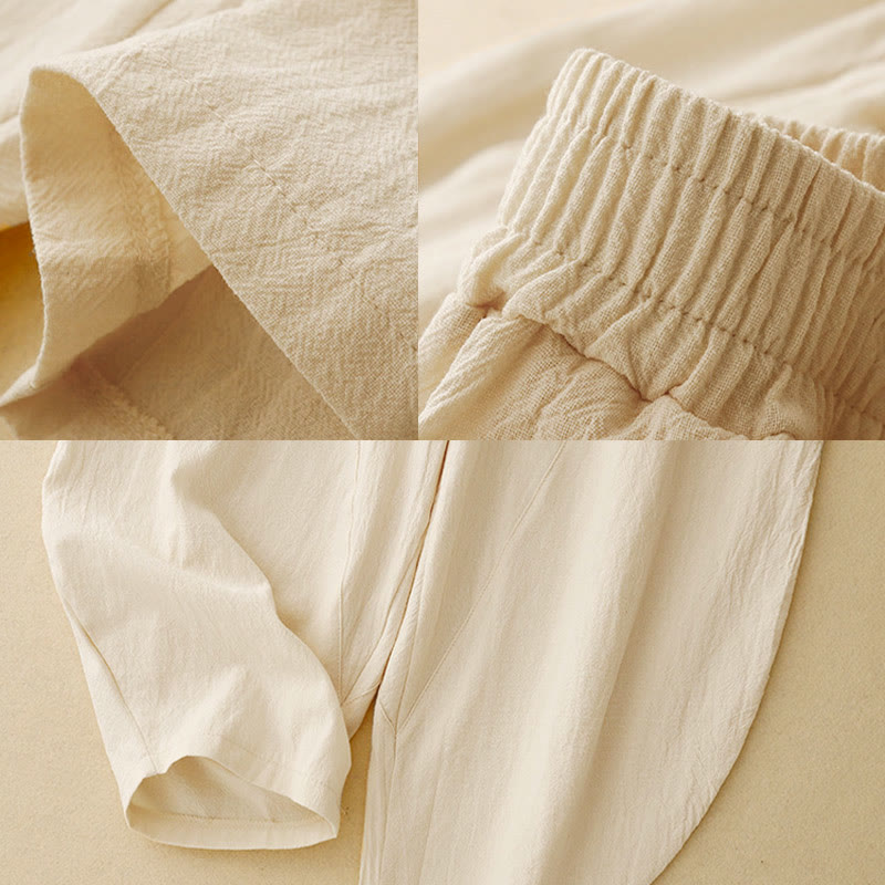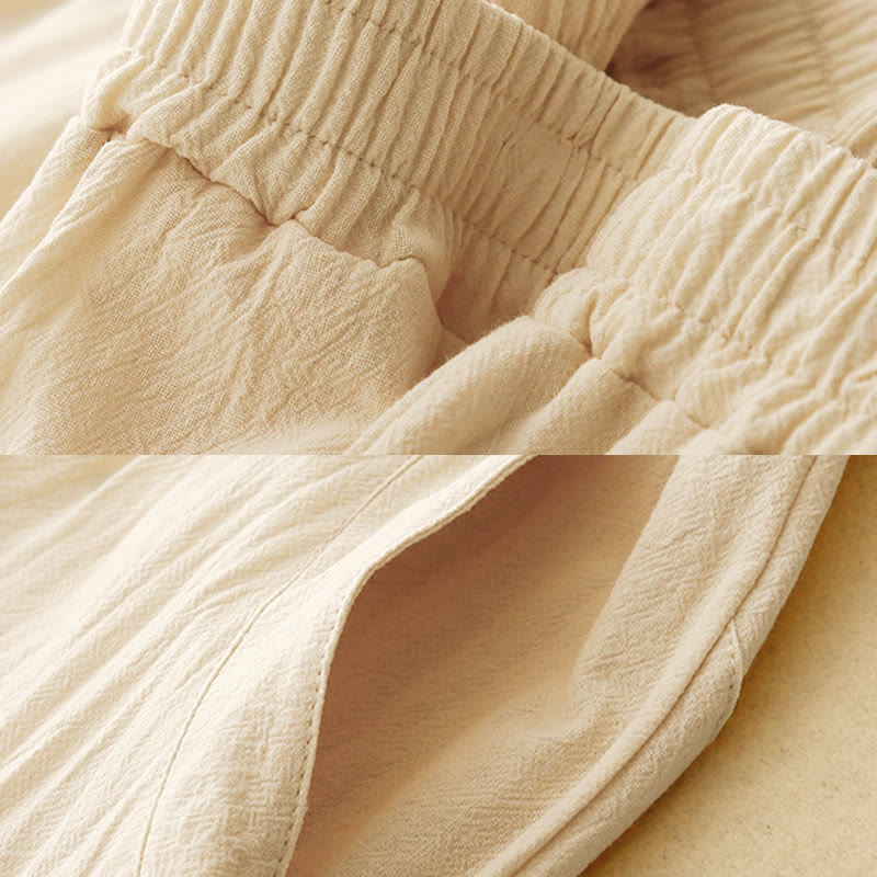 Buddha Stones Fall Solid Color Patchwork Simple Design Women's Wide Leg Pants With Pockets - Beige - US8-10,UK/AU12-14,EU40-42 (2XL) - image 1