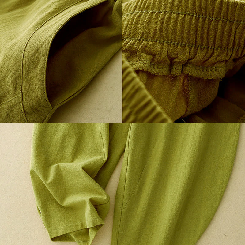 Buddha Stones Fall Solid Color Patchwork Simple Design Women's Wide Leg Pants With Pockets - YellowGreen - US8-10,UK/AU12-14,EU40-42 (2XL) - image 7