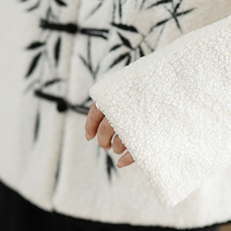 Buddha Stones White Willow Leaves Frog-Button Long Sleeve Thermal Women's Jacket