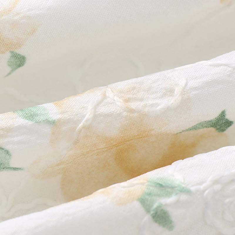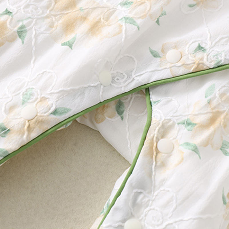 Buddha Stones Spring Fall Light Yellow Flowers V-Neck Design Baby Girl Cotton Long Sleeve One-pieces Rompers