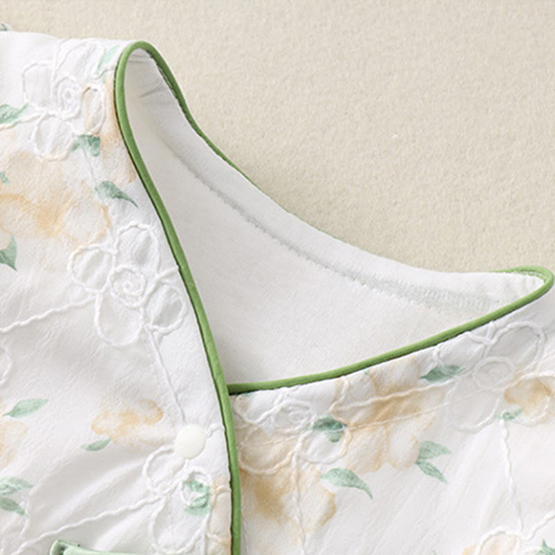 Buddha Stones Spring Fall Light Yellow Flowers V-Neck Design Baby Girl Cotton Long Sleeve One-pieces Rompers - image 7