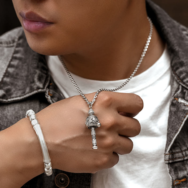 This Tibetan Om Mani Padme Hum Prayer Wheel Necklace Pendant features the six true words mantra, symbolizing love, wisdom, peace, and creativity. Made of high-quality materials and crafted by skilled artisans, it's a meaningful and unique accessory that brings positive change.