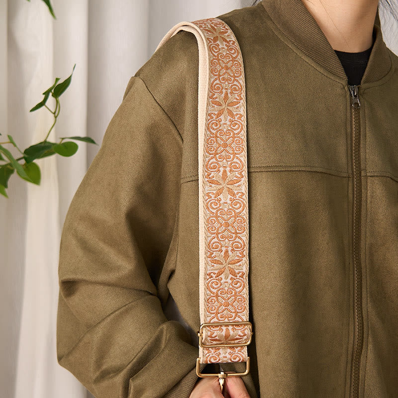 Buddha Stones Bohemian Brown Beige Flower Geometric Embroidery Adjustable Handbags Crossbody Shoulder Bag Purse Straps Replacement