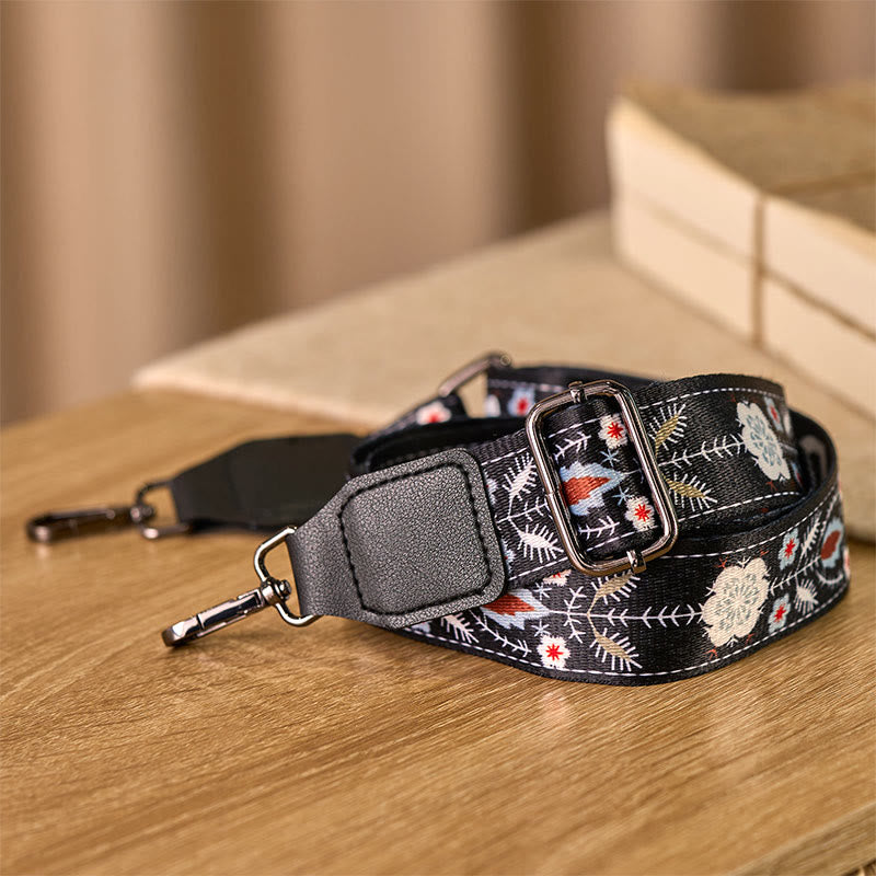 Buddha Stones Boho Black Flower Geometric Adjustable Handbags Crossbody Shoulder Bag Straps Replacement - Black Flower - 75-145cm*3.8cm - image 0