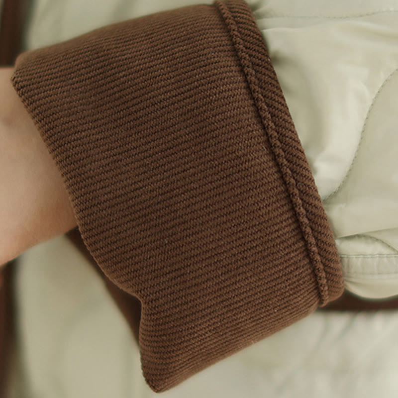 Buddha Stones Contrasting Color Lapel Women's Long Sleeve Cotton Jacket With Pockets