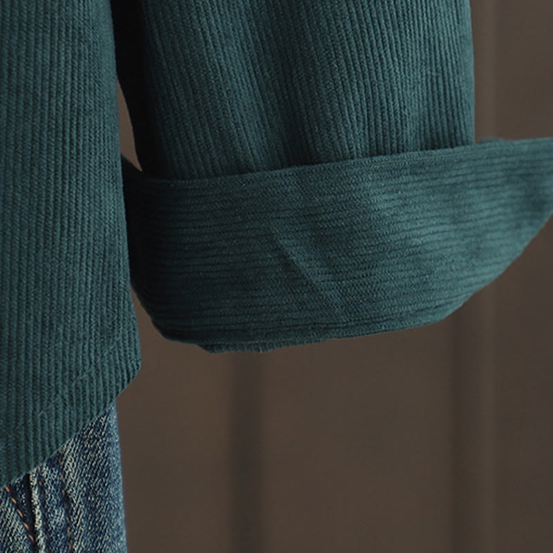 Buddha Stones Corduroy Women's Cotton Long Sleeve Jacket With Pockets