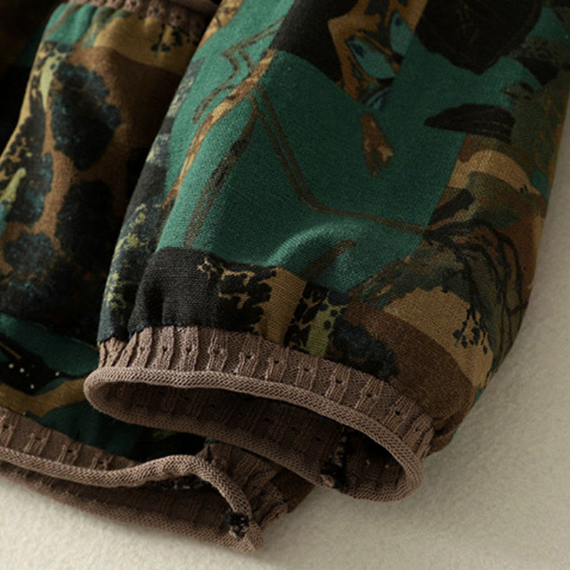 Buddha Stones Fall Geometric Patchwork V-Neck Women's Long Sleeve T-shirt With Pockets - image 10