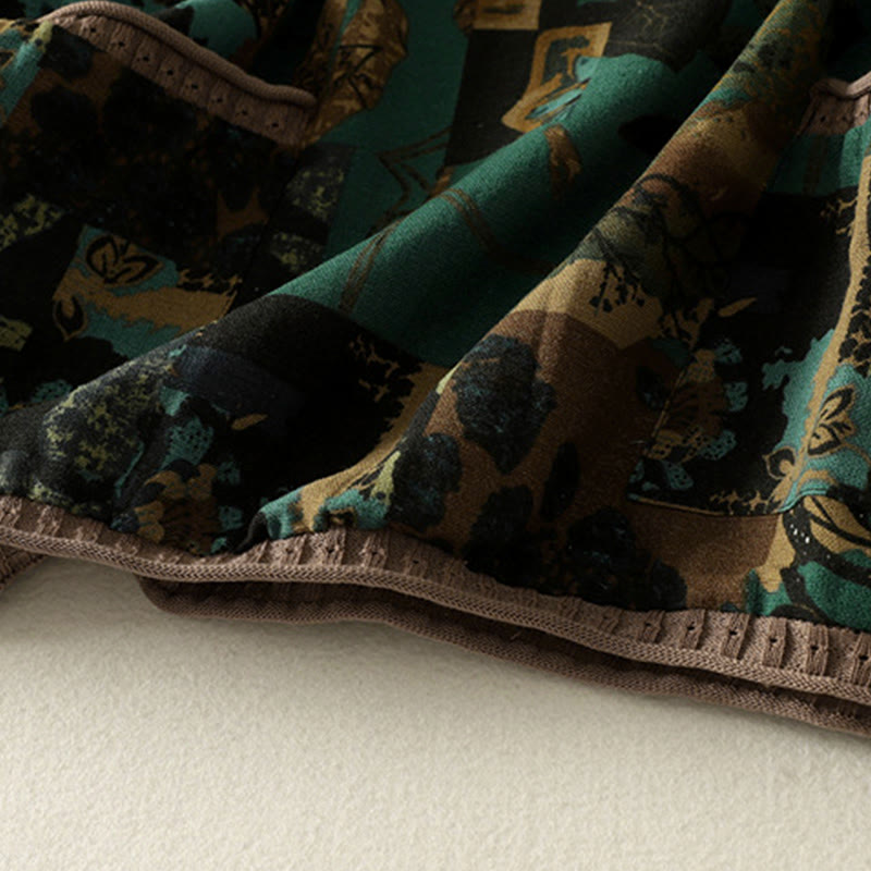 Buddha Stones Fall Geometric Patchwork V-Neck Women's Long Sleeve T-shirt With Pockets - DarkSeaGreen - US4-6,UK/AU8-10,EU36-38 (F) - image 8