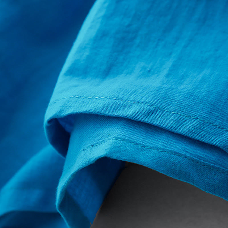 Buddha Stones Plain Long Sleeve Lace-up Desgin Women's Cotton Midi Dress With Pockets - DeepSkyBlue - US8-10,UK/AU12-14,EU40-42 (2XL) - image 0