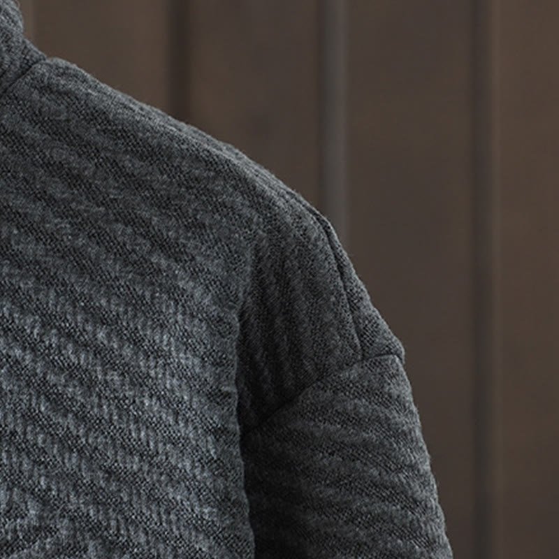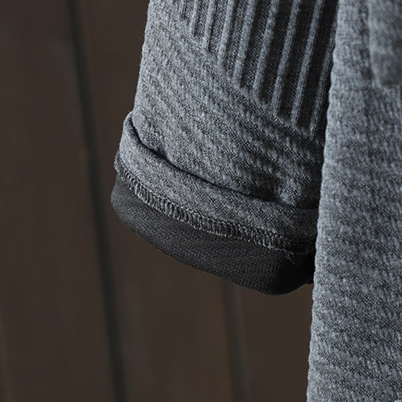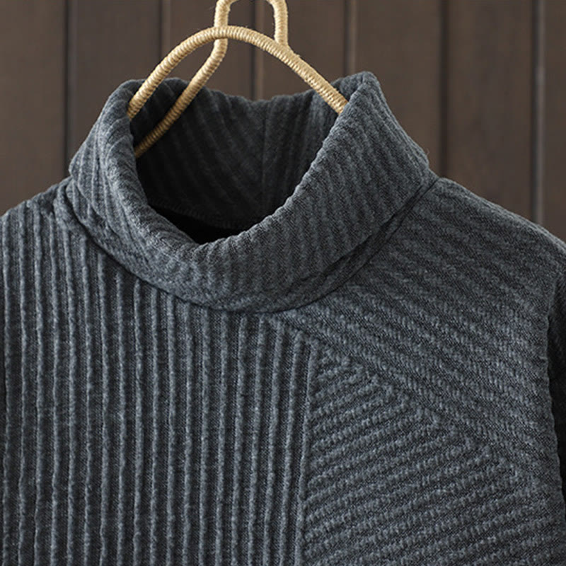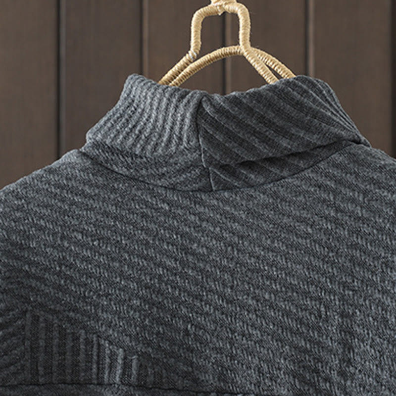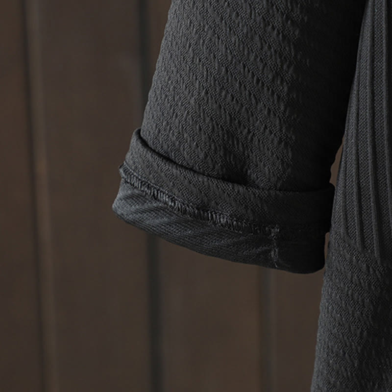 Buddha Stones Pure Color Irregular Design Cotton Turtleneck Long Sleeve Midi Dress With Pocket