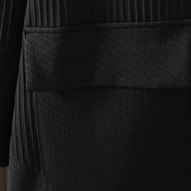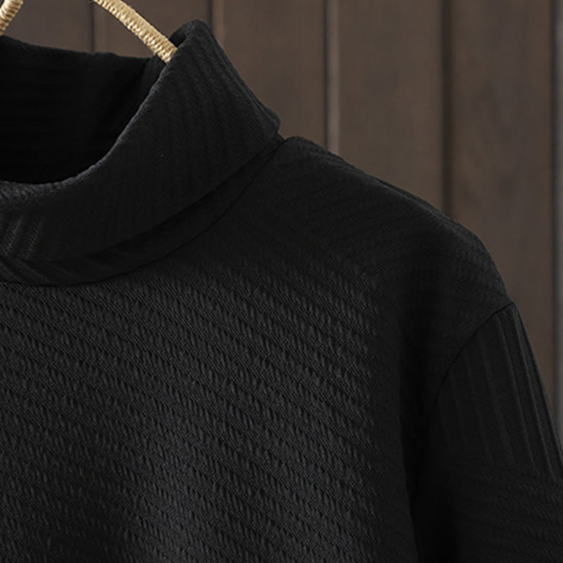 Buddha Stones Pure Color Irregular Design Cotton Turtleneck Long Sleeve Midi Dress With Pocket - Black - US8-10,UK/AU12-14,EU40-42 (2XL) - image 0