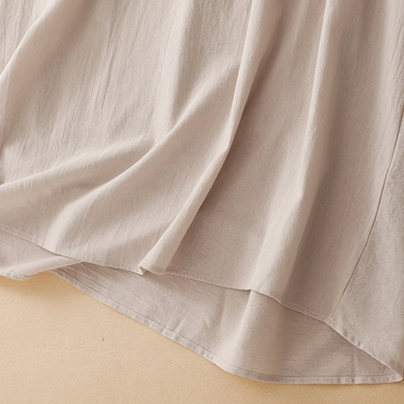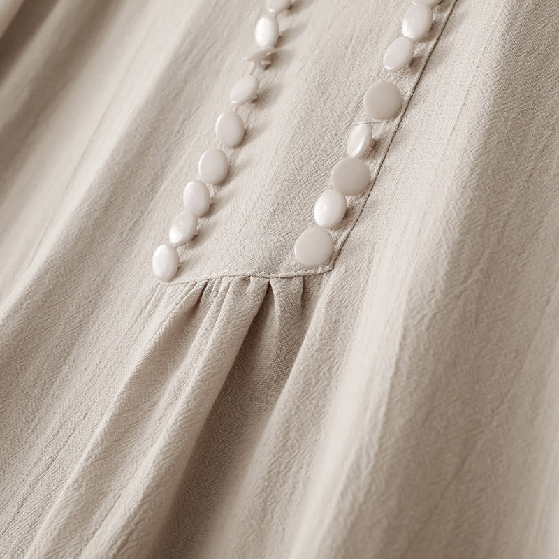 Buddha Stones Pure Color Stand Collar Double-breasted Buttons Design Cotton Long Sleeve Midi Dress - image 10