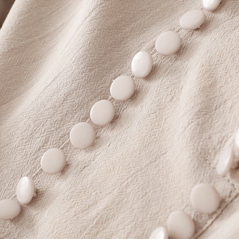 Buddha Stones Pure Color Stand Collar Double-breasted Buttons Design Cotton Long Sleeve Midi Dress - AntiqueWhite - US14,UK/AU18,EU46 (2XL) - image 0