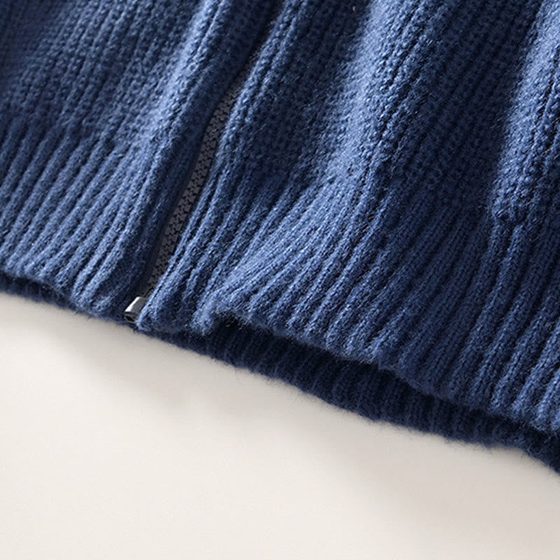 Buddha Stones Winter Solid Color Zipper Knit Cardigan Men's Long Sleeve Cotton Jacket With Pockets - DarkBlue - US/UK/AU40,EU50 (2XL) - image 0