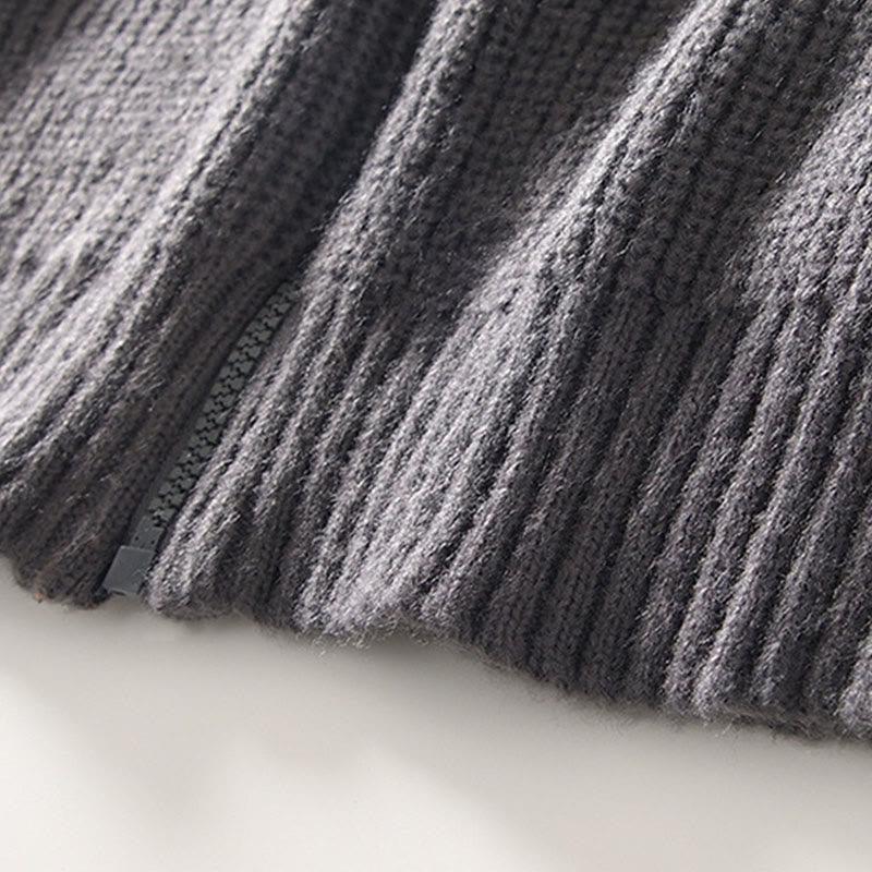Buddha Stones Winter Solid Color Zipper Knit Cardigan Men's Long Sleeve Cotton Jacket With Pockets