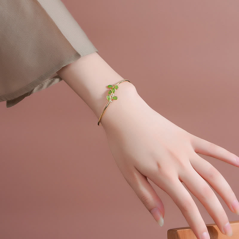 Buddha Stones 925 Sterling Silver Leaves Tassel Design Green Jasper Protection Necklace Pandant - 925 Sterling Silver Bangle - image 8